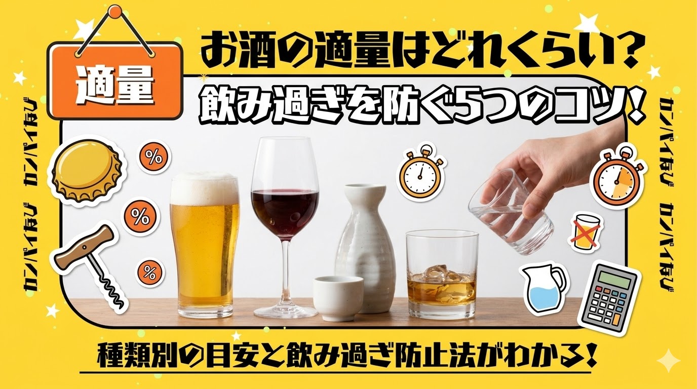 本記事では、厚生労働省のガイドラインと最新の医学データをもとに、お酒の種類別の適量一覧から飲み過ぎのリスク、自分に合った適量の見つけ方、そして飲み過ぎを防ぐ具体的なコツまでを徹底解説します。
